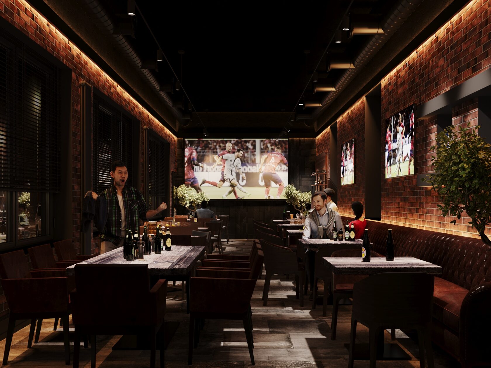 Обновление легендарного паба "Британика" на улице Горького, родоначальника всей сети "Британики". Задачей было в сжатые сроки произвести все ремонтные работы, проработать декор, избавится от потолка "Грильято", под которым скрывалась паутина из электрических кабелей, обновить мебель, которую пришлось местами реставрировать, настроить грамотно освещение, комфортное для гостей. Нужно было обновить его осторожно, чтобы не спугнуть постояльцев заведения, чтобы они продолжали чувствовать себя в той же атмосфере, которая их привлекала все годы. Зал стрит освежили, поменяли мебель на более комфортную, цвет стен сделали более современным, приглушили освещение, на стене появилось граффити местного художника.