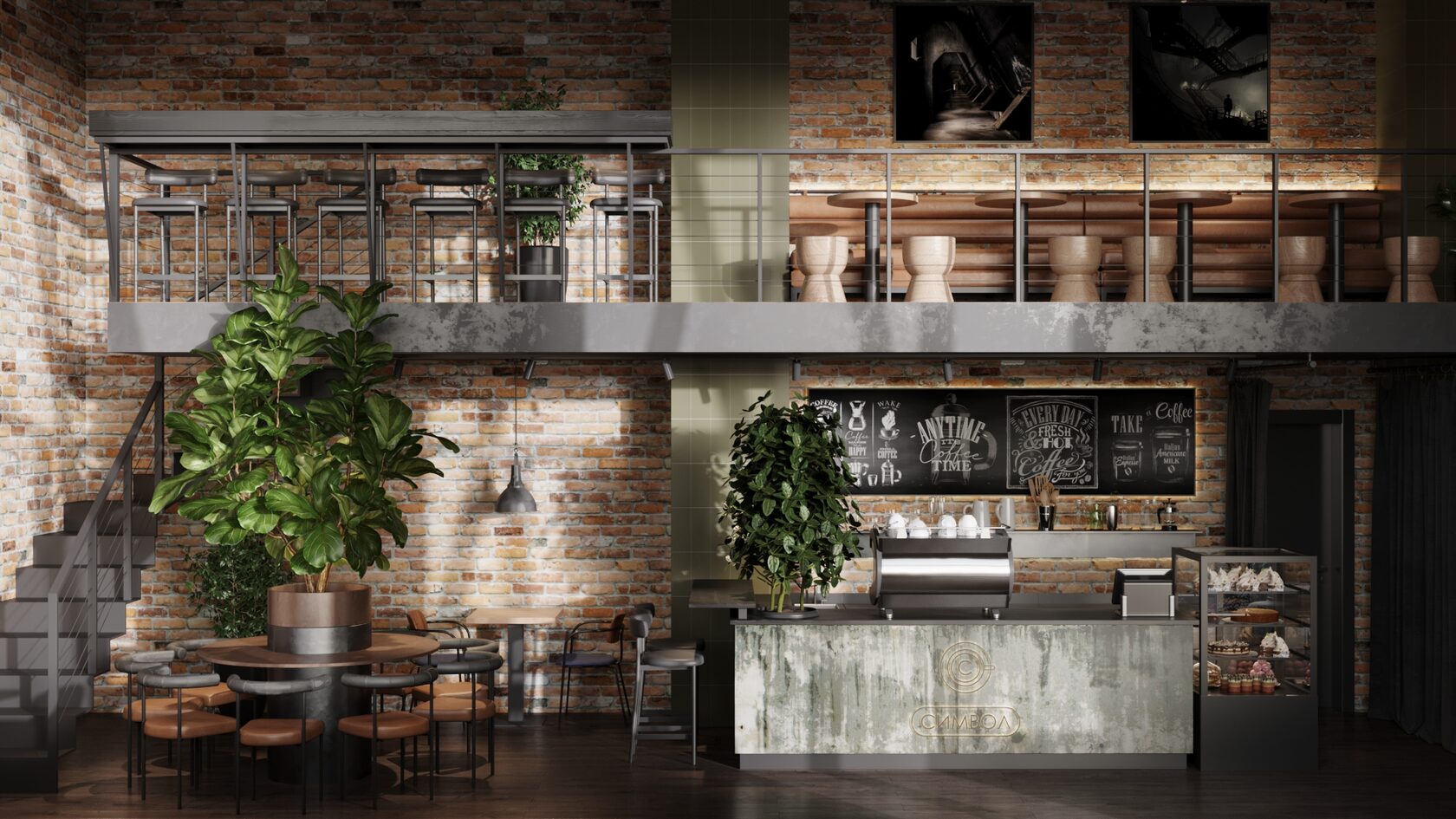 Мебель в кофейне выполнена из массива дерева и чугуна, что привносит нотку уюта в холодные металлические формы. Подвесные лампы с эффектовым дизайном освещают барную стойку, за которой мастера готовят кофе, превращая процесс в настоящее искусство.