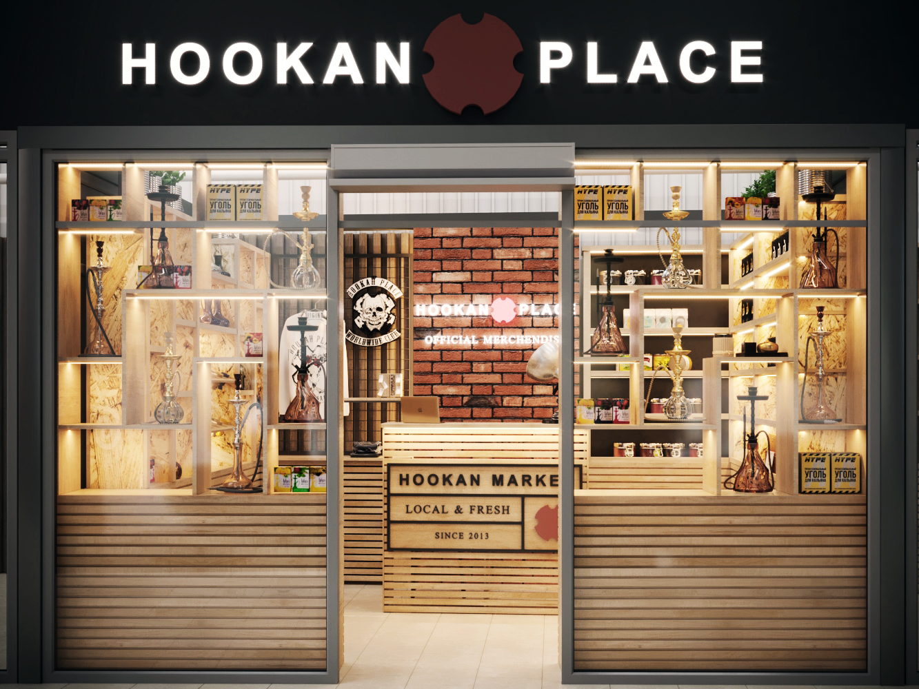 Оформлению магазина пришлось уделить особенное внимание. Необходимо продумать, что можно оставить на виду (угли, щипцы для углей, фруктовые курительные смеси без никотина), а что расположить так, чтобы можно было легко продемонстрировать по первому требованию. Стойки и стеллажи должны быть оборудованы «дневными» шторками, остальной товар расположен на витрине с подсветкой. Основной материал был использован дерево натурального оттенка и металл черного цвета.