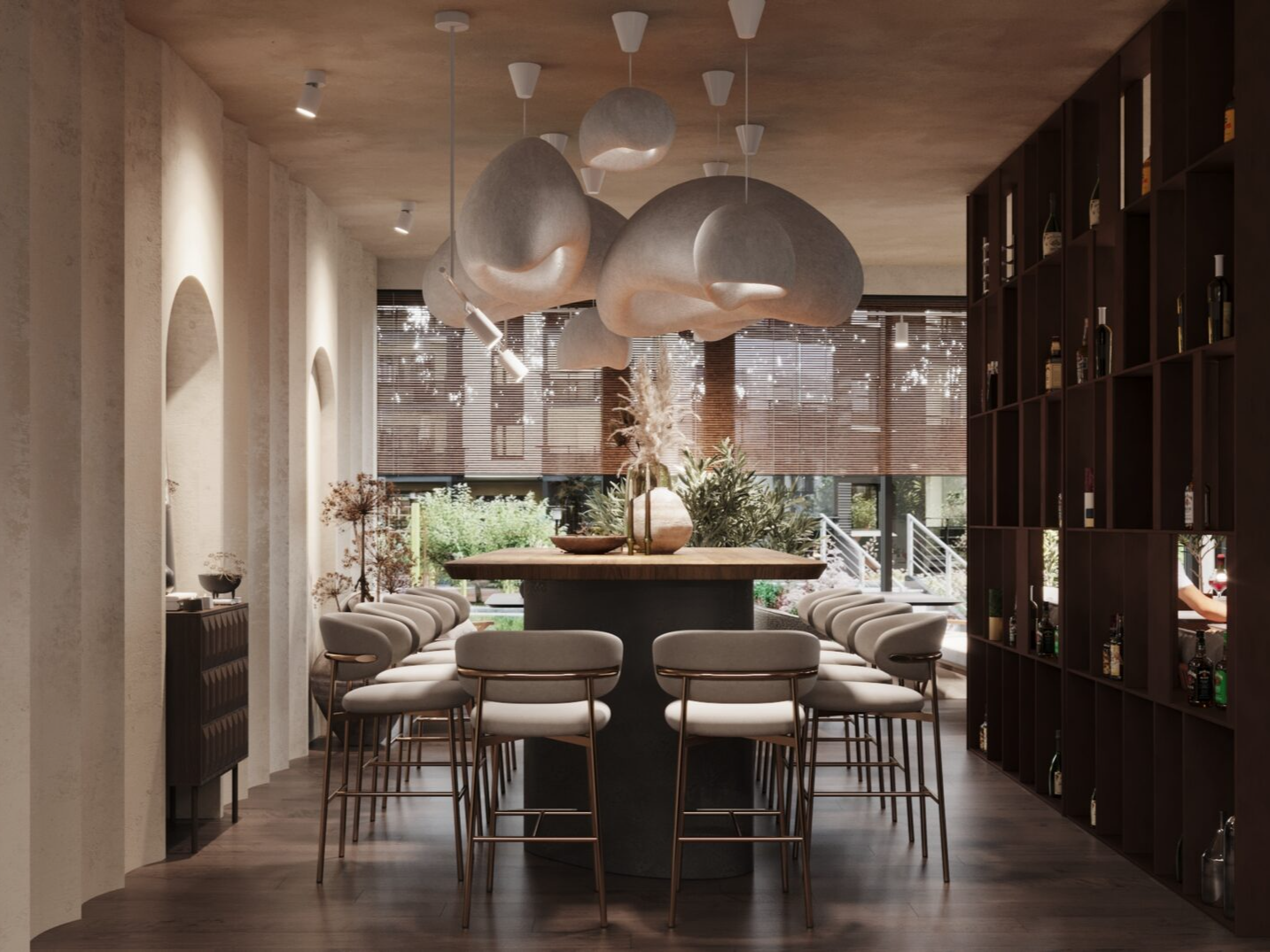 Для этого семейного ресторана мы создали пространство, которое сочетает комфорт, стиль и функциональность. Особенность интерьера — разнообразные зоны посадки, что позволяет адаптировать пространство под разные типы гостей и мероприятий...