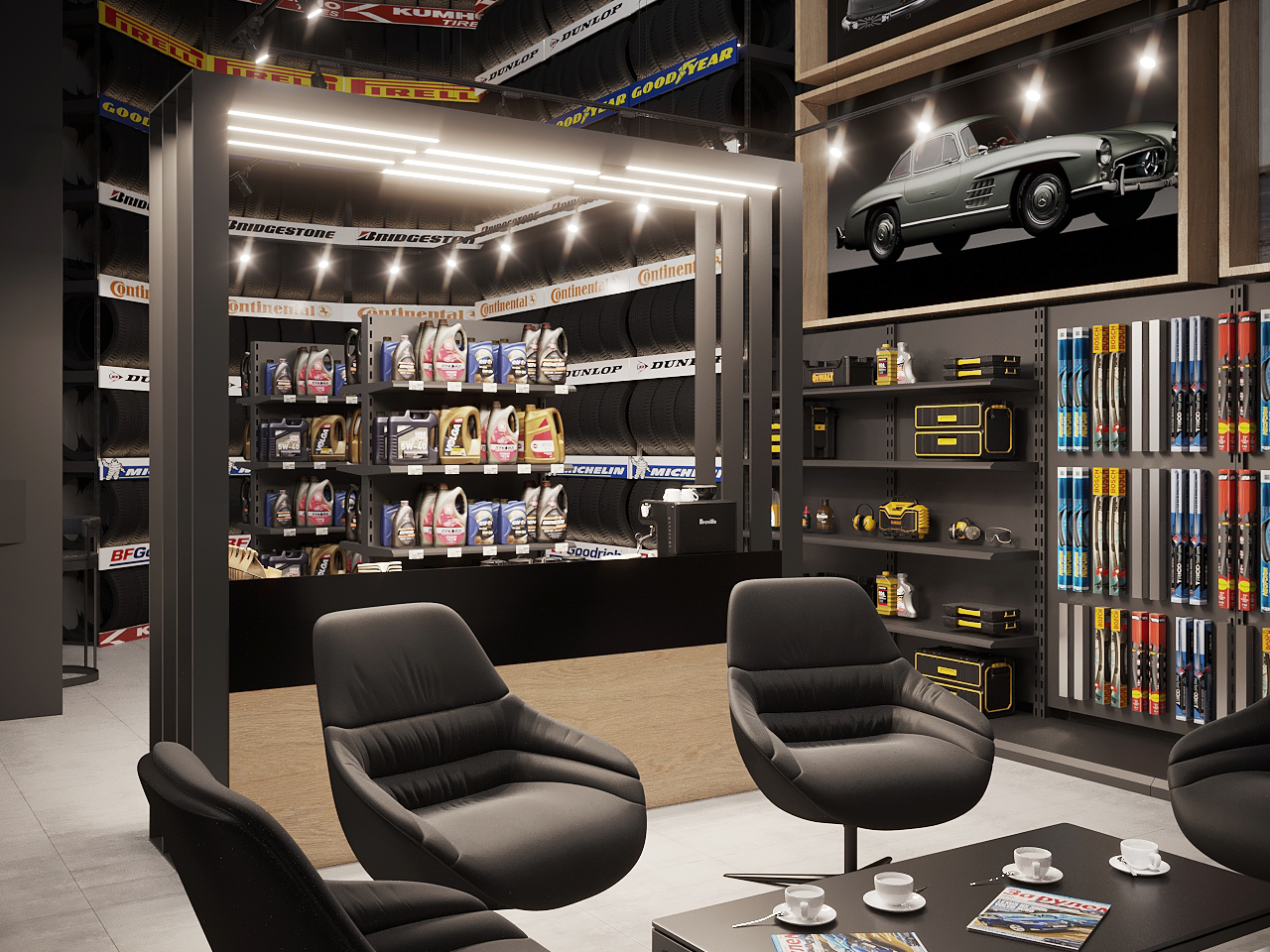 Автоцентр находится на Московском проспекте в городе Калининграде. Задачей было сделать дизайн современного автоцентра, соответствующий мировым тенденциям. В помещении продумана логистика перемещения посетителя во время пребывания в автоцентре
