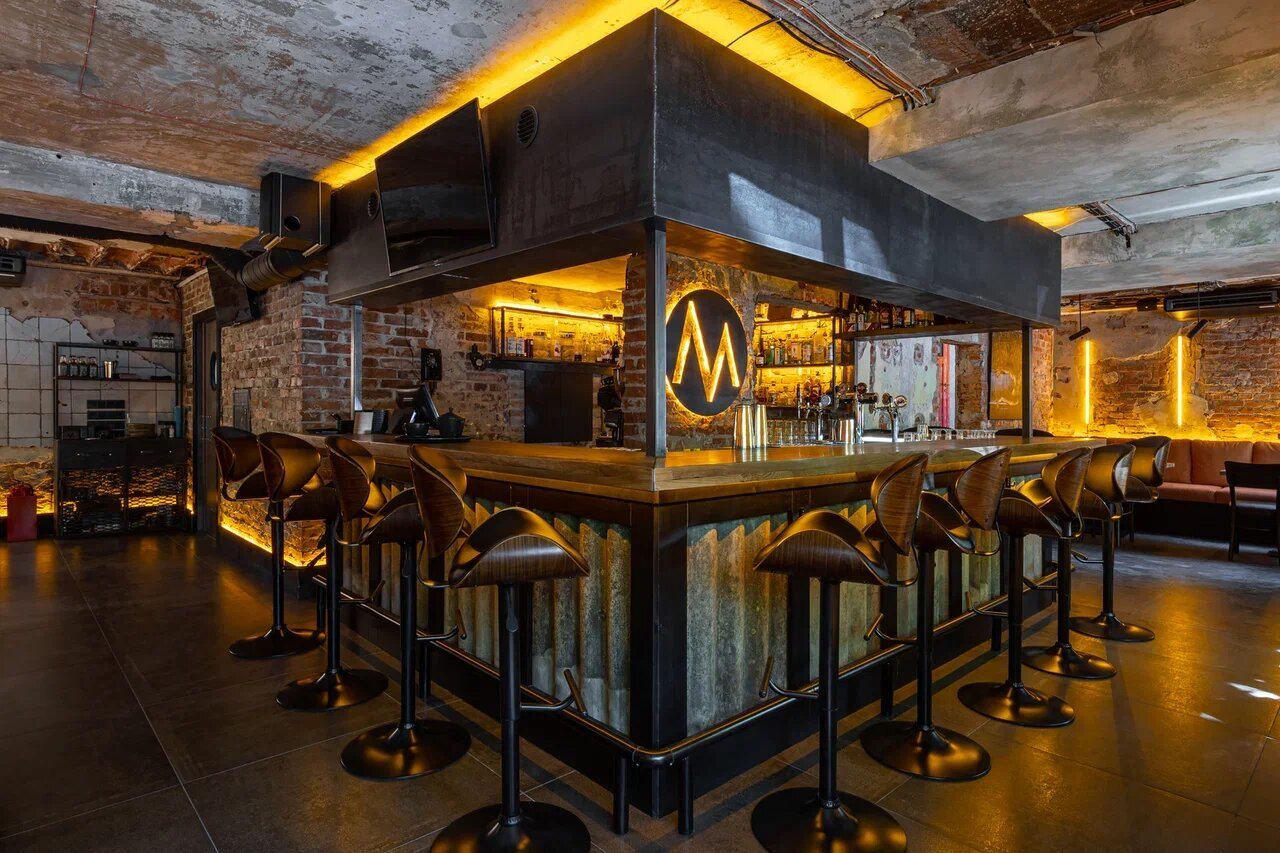 Бар находится не далеко от центра города, в историческом районе города Калининграда в здании дома офицеров. Здание кирпичное, со своей историей, поэтому было решено подчеркнуть существующие кирпичные стены с помощью подсветки и декора...